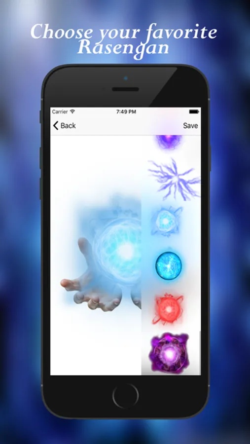 Take a picture or choose one from your camera roll, load your favorite rasengan and apply some awesome filter to it.
