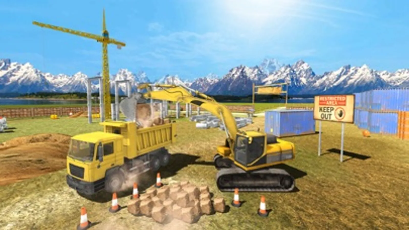 Real heavy duty construction machines busy in city construction like sand dumpers carrying sand, excavators busy in digging, cement mixers mixing cement for coating, dump trucks carrying debris and rocks on offroad bumpy terrain. Take up the challenge of ultimate town construction. As loader & dump truck driver, show immense talent of a crane operator.