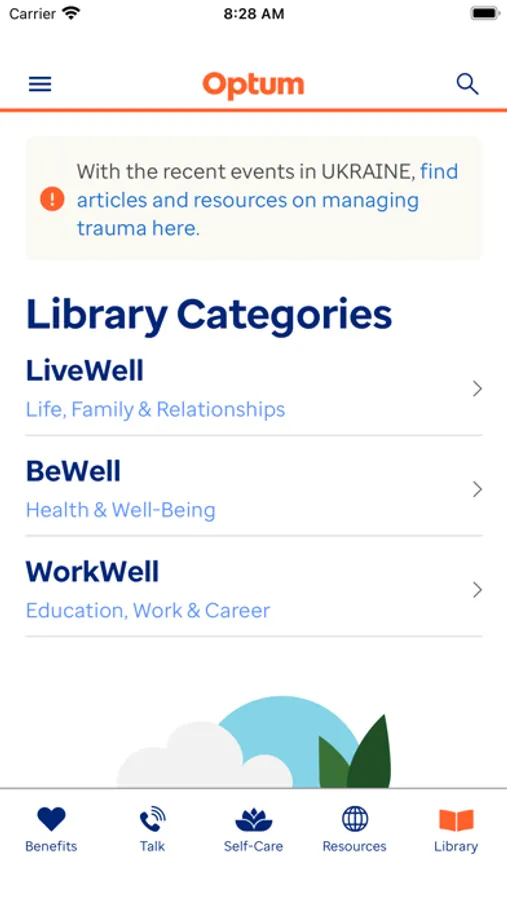 • Direct access into Optum’s Livewell member portal, where you will find valuable information and resources that can help you live a healthier and happier life.