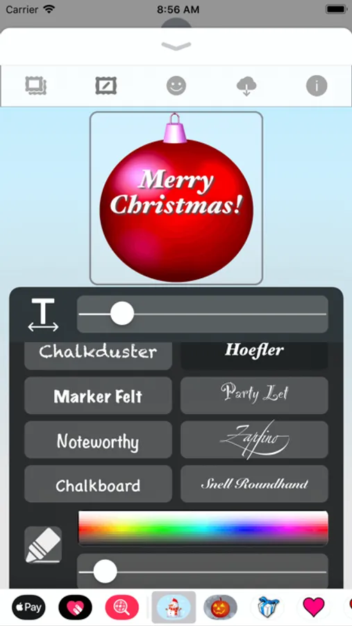 - Sticker editor : type your own message, select a font, shadow and tint color
