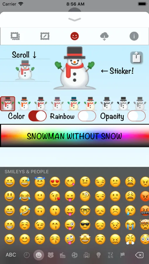 - Create stickers from the standard emoji keyboard. All emojis are available!