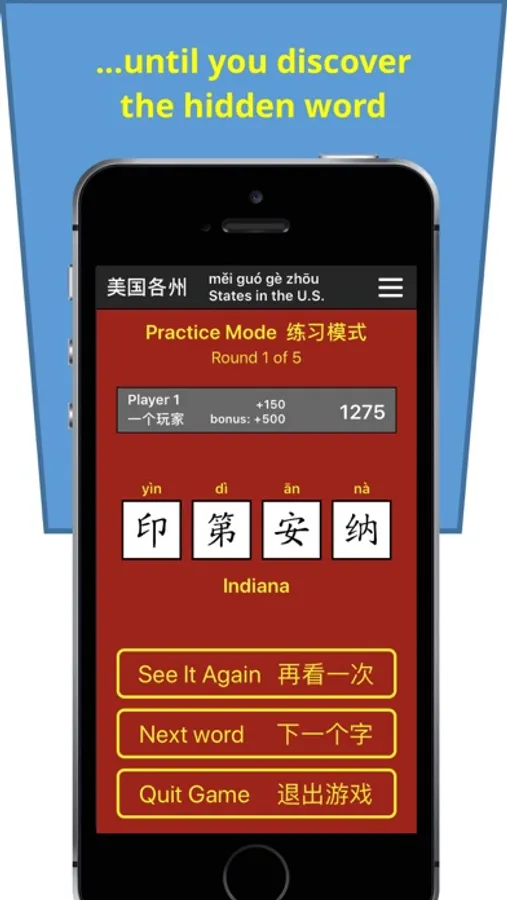 After you identify the hidden word, each of the characters will be written for you in the correct stroke order. If you do not know the correct stroke order, you can click on the “See it again” bar as many times as you want.