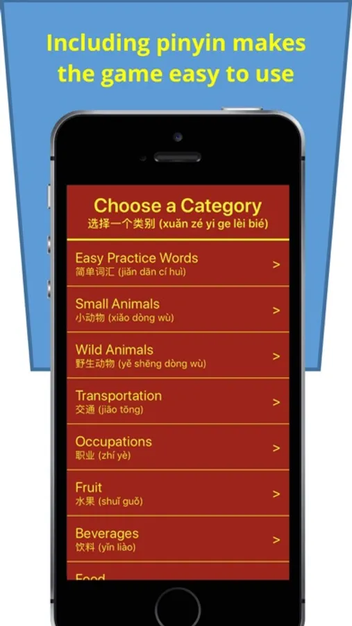 The object of the Chinese Stroke Challenge game is to identify the hidden word in as few strokes as possible by guessing which strokes may be hidden. Players are given clues before they even begin: how many characters make up the word, how many strokes are in each character, and the category (for example (fruit, transportation, occupations). All this information is in English, Chinese, and pinyin. The how-to-play instructions and help options that you can access while playing are in both English and Chinese. Essentially Chinese Stroke Challenge is similar to a popular pencil-and-paper game in the US called Hangman except strokes instead of letters are used.