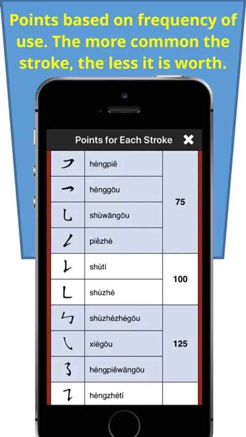 Scoring is based on the frequency that strokes are used in written Chinese.