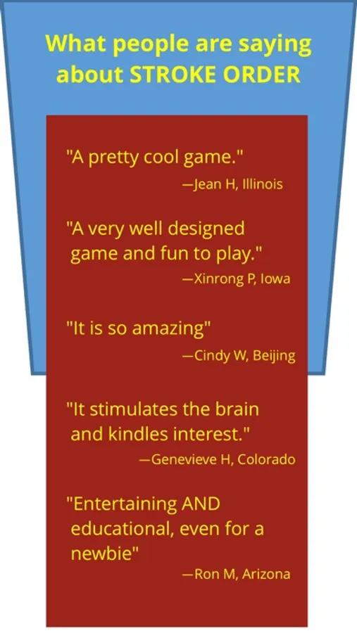 When writing Chinese characters, it is important that strokes be drawn in the correct order. Mastering the correct stroke order requires countless hours of tediously drawing and redrawing the character. Chinese Stroke Challenge turns tedium into fun. Whether you are just starting to learn Chinese or are fluent, you will not want to put this game down. Use in moderation, Chinese Stroke Challenge can become addictive.