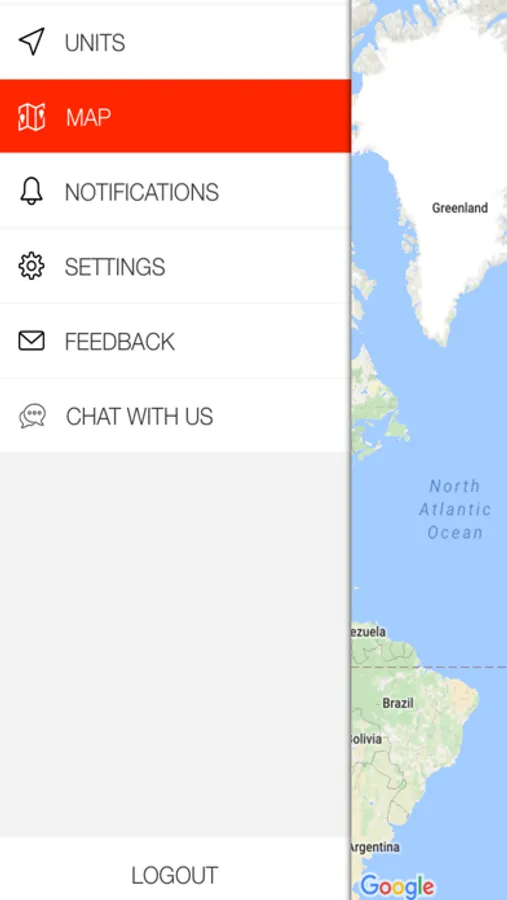 The UNITS menu item is used to select the vehicles you need to monitor. The screen will be zoomed and centered in such a way that the vehicles you selected will always appear in the center.