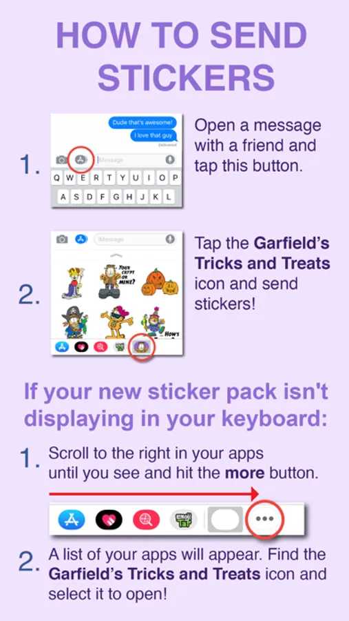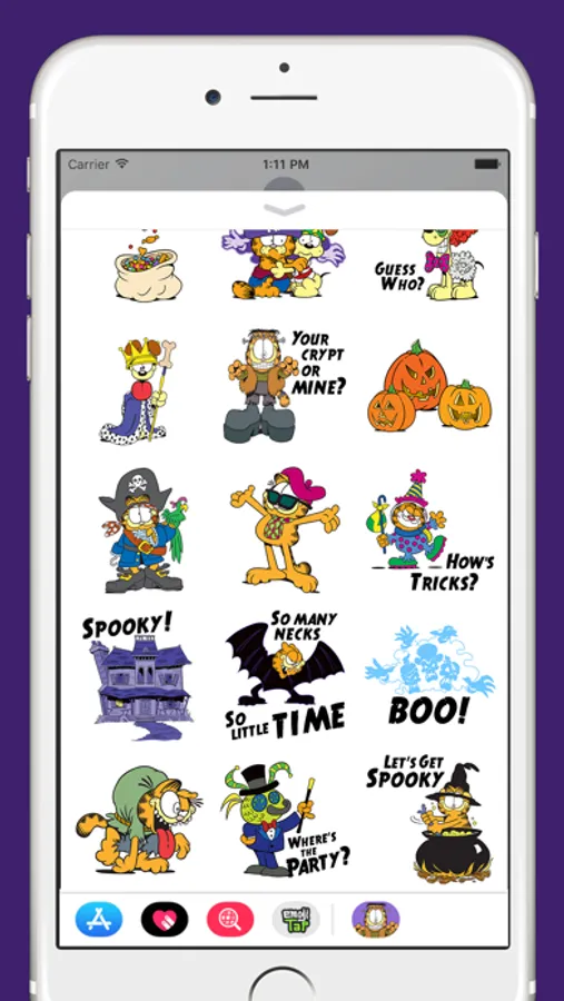 Scare up some fun when you share these ghoulish Garfield stickers with your favorite fiends! Pack includes 24 animated stickers.