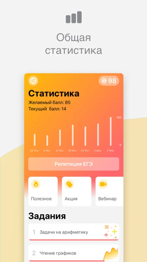 • статистику подготовки, показывающую твой прогресс