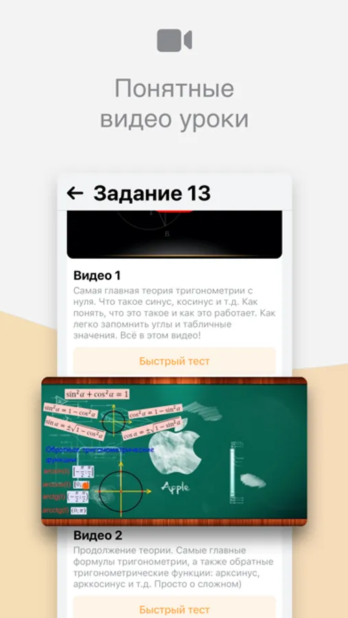 Все задачи приложения соответствуют реальным вариантам из профильного ЕГЭ.