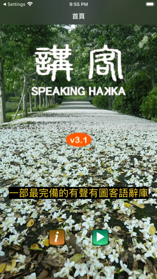 這是一套學習客語(客家話)的工具。它的資料庫儲存了超過6千個漢字與2萬多個詞語、短句、及諺語。它很容易使用。使用者只需輸入漢字或從音符列表中選取一個拼音組即可進入搜尋。針對每一個漢字或詞句,資料庫提供了字詞的定義、拼音、例句、華語同義詞,以及最重要的,它用客語發聲說出這些字詞。它甚至提供圖片使一些詞語的意義更為清楚。