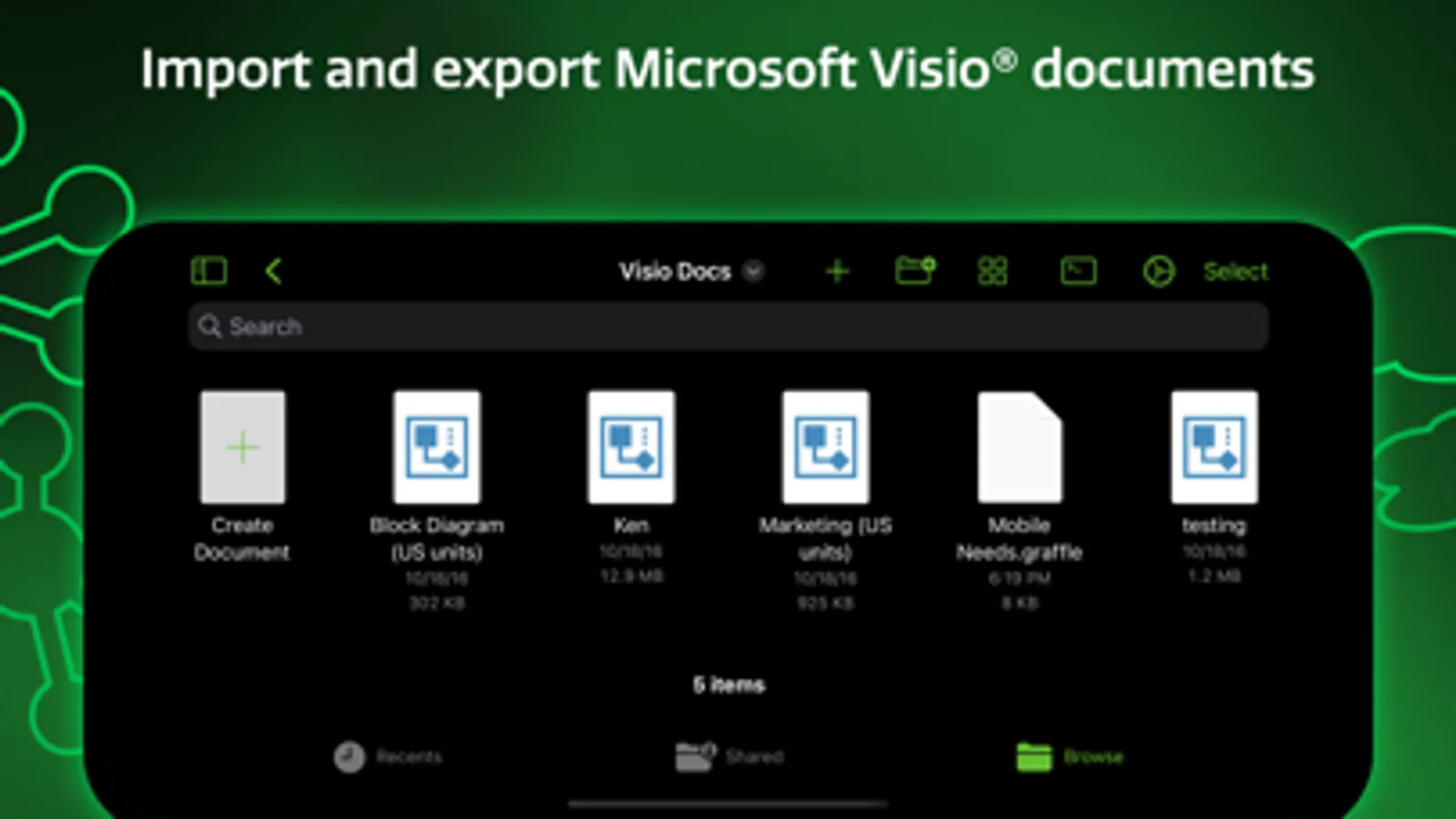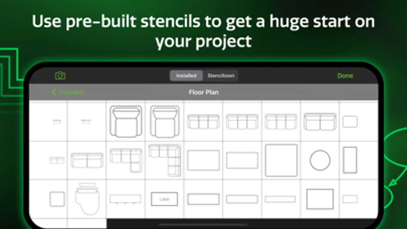 Create quick, beautiful, and portable charts, graphics, designs, mockups, and more. Use your iPad and iPhone screen as your paper, canvas, and whiteboard—all in one. It comes with thousands of searchable objects via Stenciltown, like server racks, space planning stencils, iconography, and more.