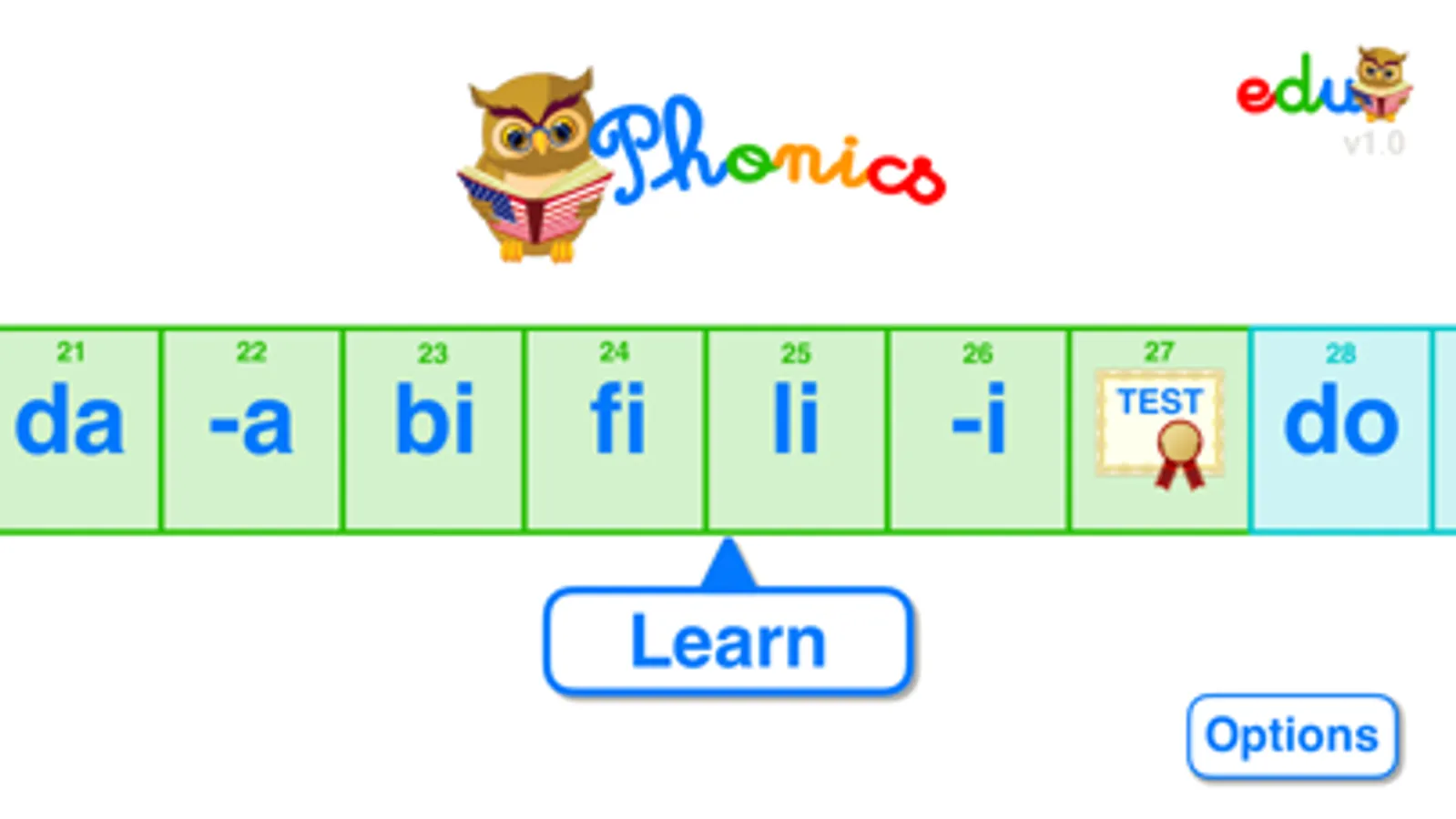 This educational game uses phonics to teach reading English while having fun for kids age 4 or older. Through progressive and structured levels, children discover phonics one at a time, then learn how to blend them. A nice benefit to your child!