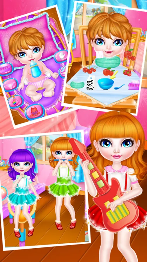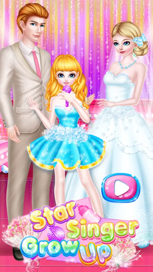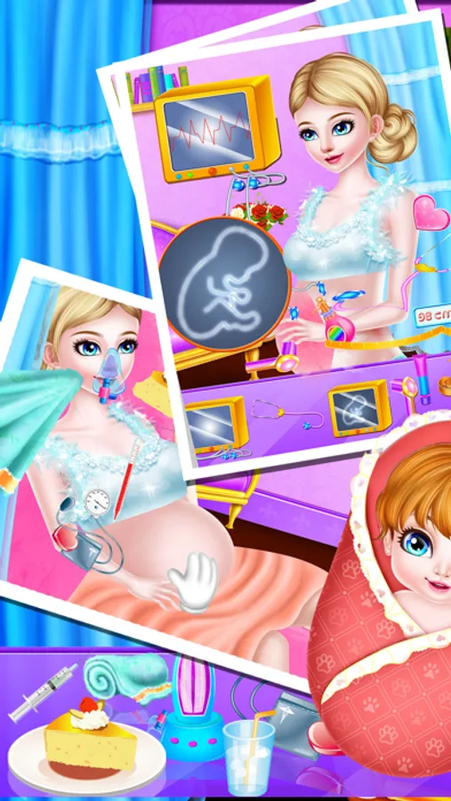 There is a beautiful lady who were proposed by her beloved prince one day. She is very happy and they will hold a wonderful wedding soon. Come to help this nice couple to dress up with wedding dresses and accessories. After their wedding, the beautiful lady is pregnant and you need to play the role of doctor to help have a checking to see whether her baby is healthy. Use our given medical tools to check her blood pressure, temperature and heart rates of her baby step by step. Then when she is going to give birth, you need to take care of her. Give her one piece of cake and let her drink some water. Help the lady have some oxygen and then she will give birth of the baby successfully. Use the towel to dry the baby and wrap her up with the quilt. Next you can come to look after the baby carefully.Change her diaper and feed her with milk. Then dress the baby up with lovely clothes. After that the baby will grow up and you can play with her happily. This little girl loves singing very much and can play various kinds of musical instrument. She has become one famous star singer. In next stage, the girl will go to school for classes of math and art. Follow our instructions to help the girl do well at school. In the following stage, you need to dress up the star singer with fashion clothe and accessories for her concert. At last take a picture for her father, mother and she together to show us.