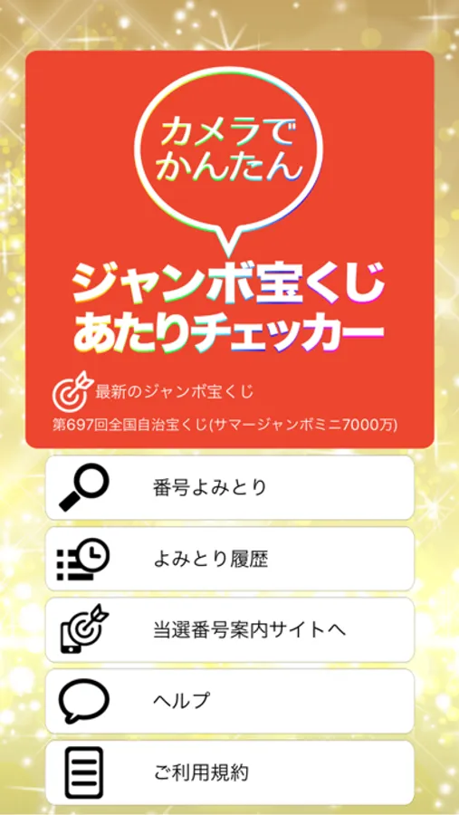 ※本アプリは「ジャンボ宝くじ」にのみ対応しております。ロト、ナンバーズ、その他自治宝くじ、地方自治宝くじは対応しておりません。