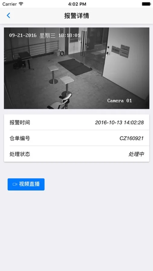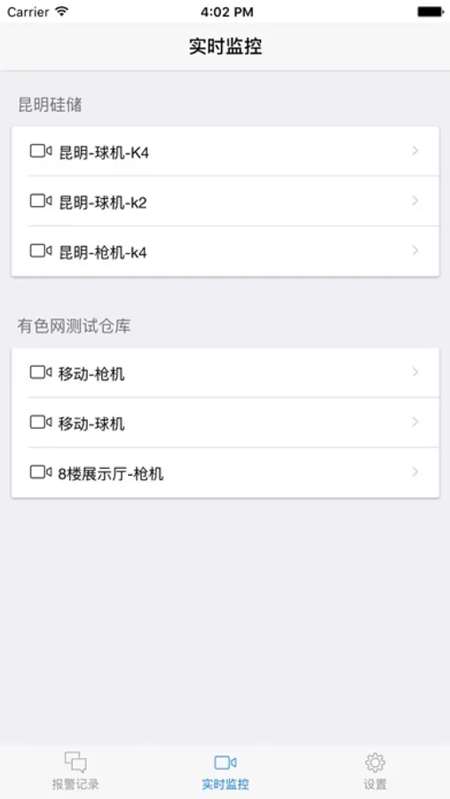 上海有色网仓库监控系统。该应用可以安装在iOS 手机上。 用户注册后可以使用手机在 wifi、移动网络环境下远程观看摄像头直播视频。 接收货物震动报警信息。