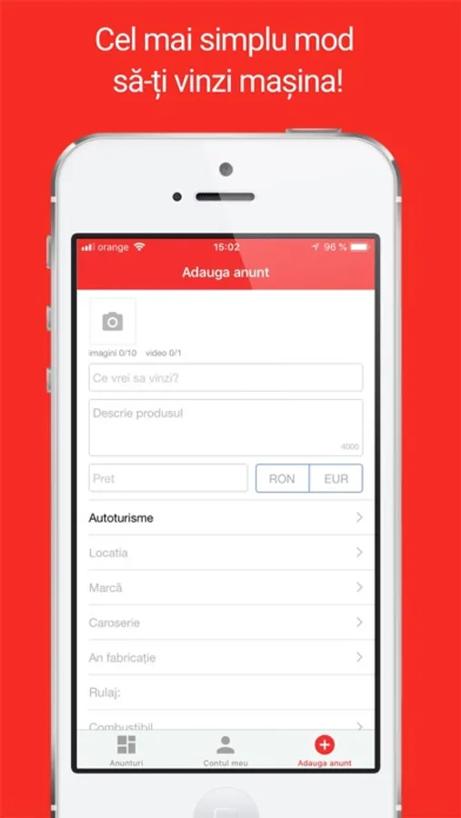 - adaugi anunț simplu și repede, cu ajutorul unui formular intuitiv, construit special pentru mobilul tău;