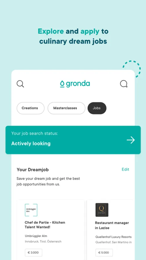 FIND YOUR CULINARY DREAM JOB — If you are open for job offers, the best hotels & restaurants in the world will actively get in contact with you — not the other way around. You can directly chat with them on Gronda.
