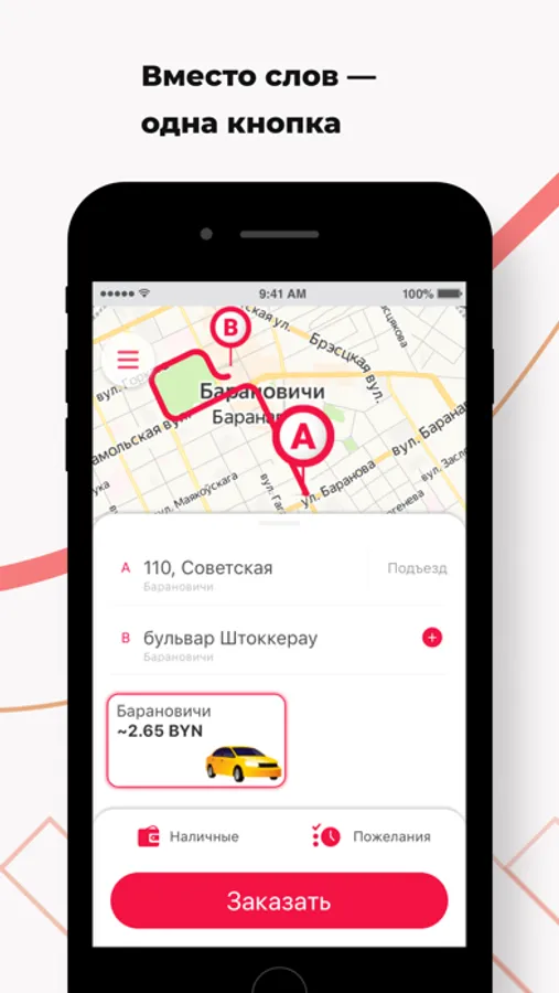 Заказывайте такси Кали Ласка в городах Барановичи, Берёза, Браслав, Вилейка, Глубокое, Жабинка, Лида, Лунинец, Несвиж, Островец, Ошмяны, Пинск, Поставы, Пружаны, Слоним, Слуцк, Сморгонь, Столин, Шарковщина через приложение. Это в 3 раза быстрее, чем по телефону! Между желанием доехать до нужного места и поиском автомобиля — пара секунд.