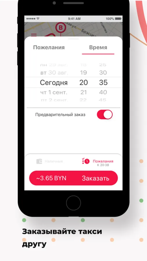 Выберите опцию “Предварительный заказ”. Поиск автомобиля начнется незадолго до заказа поездки, и автомобиль приедет к назначенному времени. Также вы будете заранее знать стоимость поездки.