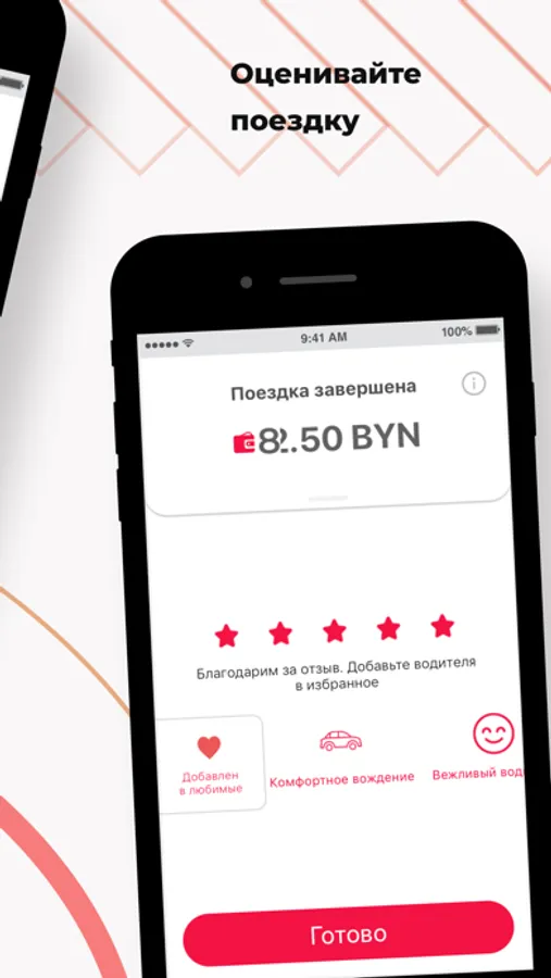 Поставьте оценку водителю, напишите отзыв или выберите реакцию из готовых шаблонов. Или посмотрите детализацию платежей после поездки.