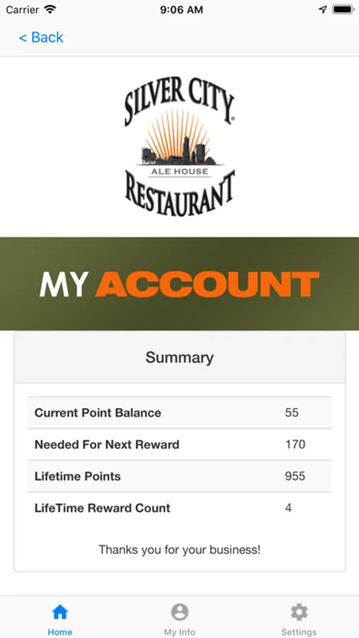 The Silver City Loyalty mobile app delivers offers and loyalty information to on-the-go customers, giving quick access to exclusive deals, enrollment options, loyalty point balance and reward lookup, loyalty program information, and information about our business- Silver City Restaurant and Alehouse