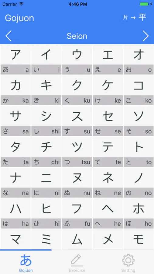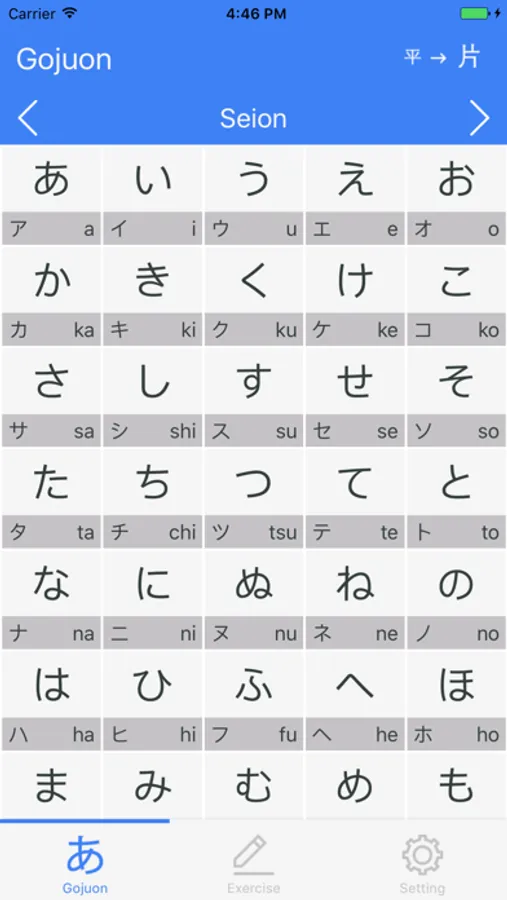 GOJUON is a simple and convenient application to learn the basic pronunciation and kana of Japanese, such as SeiOn, DakuOn, YoOn, hiragana and katakana.