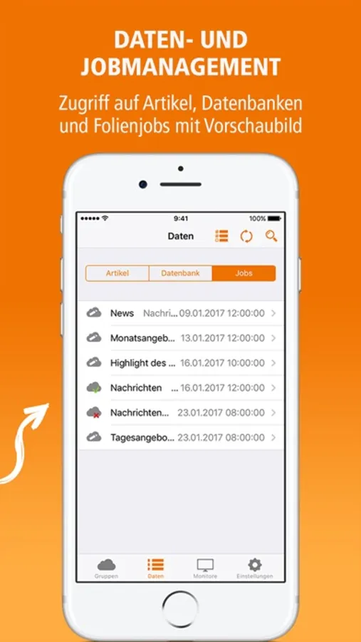 • Daten- und Jobmanagement: Zugriff auf Artikel, Datenbanken und Folienjobs mit Vorschaubild