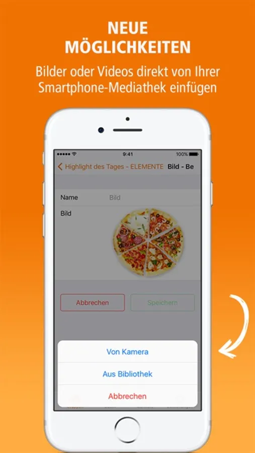 • Bilder oder Videos direkt von Ihrer Smartphone-Mediathek einfügen