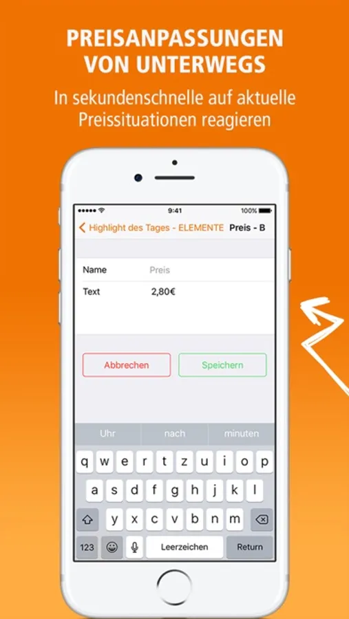 • Sekundenschnell Texte oder Preise von unterwegs anpassen