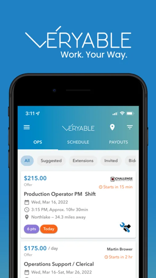 - Download the Veryable app, bid on flexible opportunities or gig work and start working today