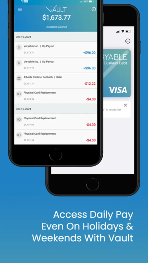 Complete the work assignment (Op) and get paid the next day! Your hard-earned money will go directly into your Vault account. You will automatically get a virtual card to use and will be able to order a physical card for your account as well!