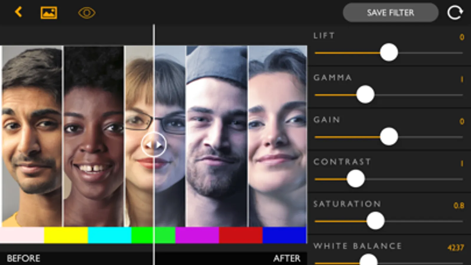 A built-in series of "looks" that provide a way to pre-visualise color grading ideas. You can also create your own looks and import Photoshop curves.