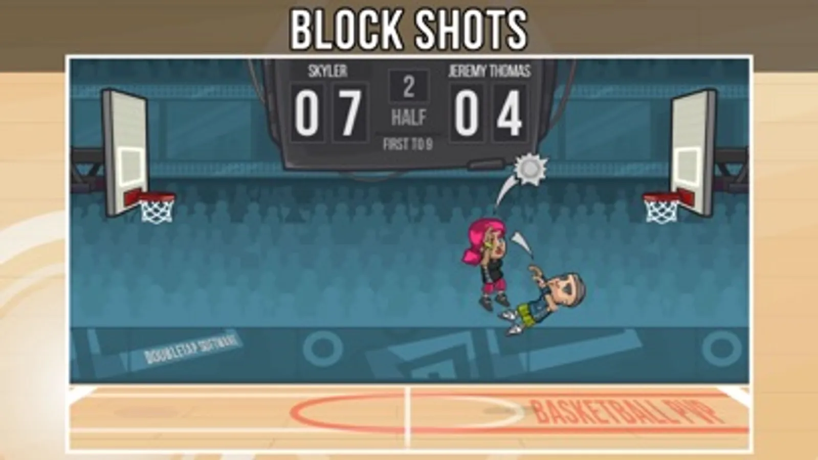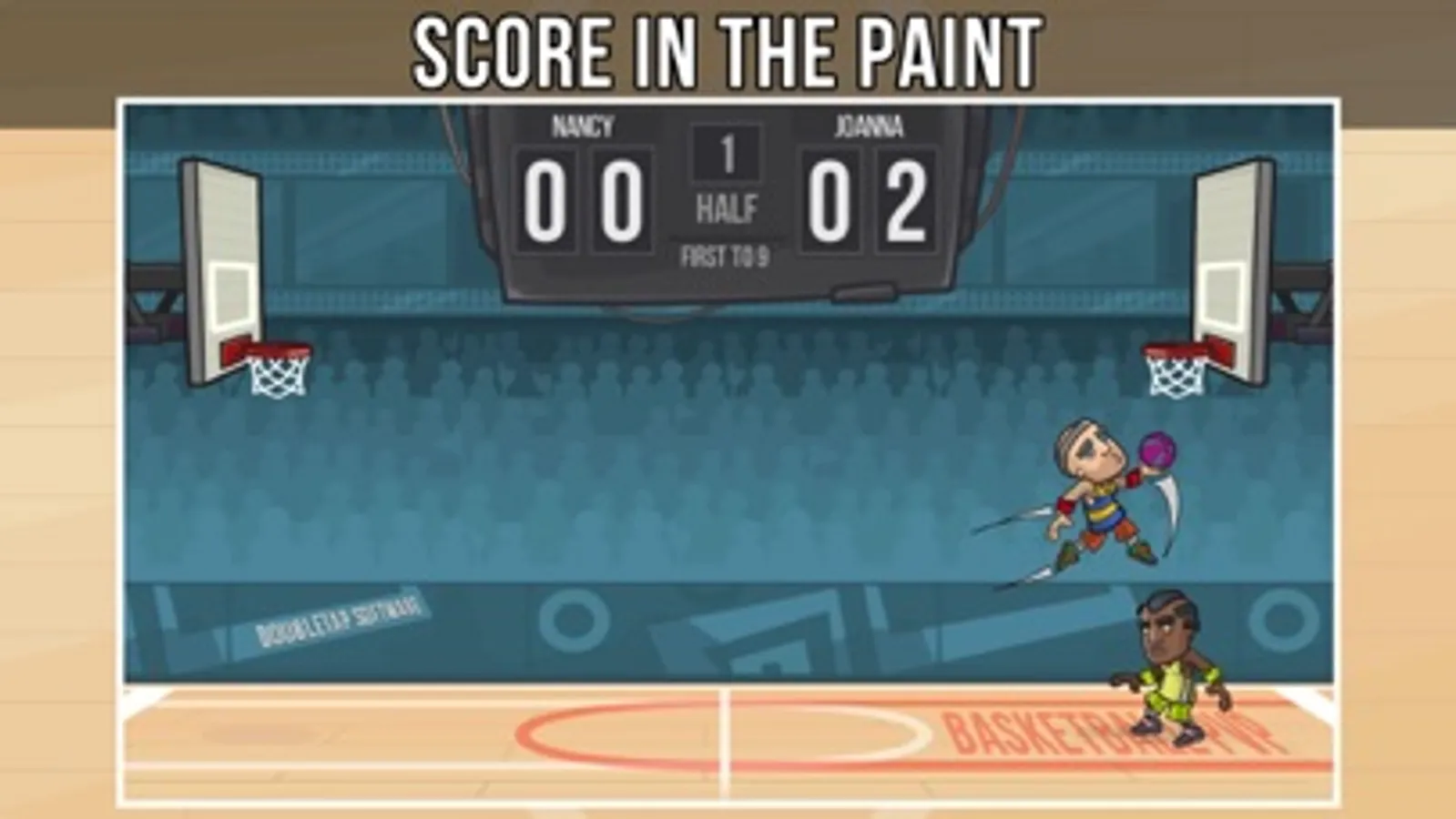 Realtime online 1 on 1 basketball action! Pump fake and drive to the hoop, or shoot pretty fade aways!
