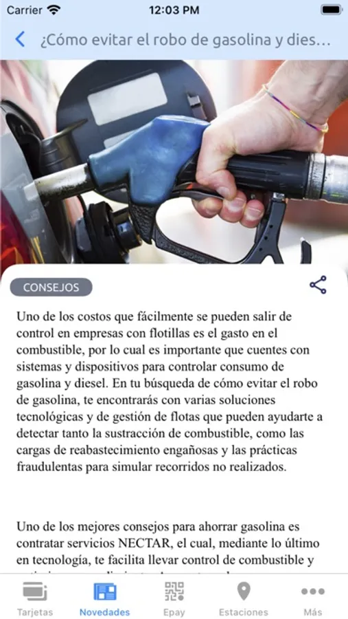 Ecosistema para llevar la telemetría de la salud de su vehículo y nivel de combustible. Tracking en vivo e histórico. Reciba publicidad y promociones personalizadas basadas en la posición y contexto de donde se encuentra y gracias a la tecnología de beacons incorporada. Realice pagos de combustible desde su App en estaciones de servicio afiliadas. Disperse presupuesto y realice el control de subcuentas asociadas a su App para que estas también puedan consumir combustible. Maneje el control desde su App de las necesidades y consumo de combustible de su familia o empresa.