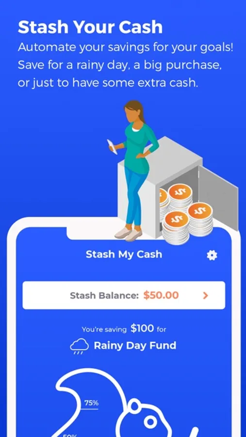 With Stash My Cash, you can automate your savings so you have some backup money in an emergency saving fund or you can set a goal to save for a big purchase. When you set up Stash My Cash, you can split your savings between paying off debt and saving. Or you can just send 100% of your savings to Stash My Cash. You're in control.