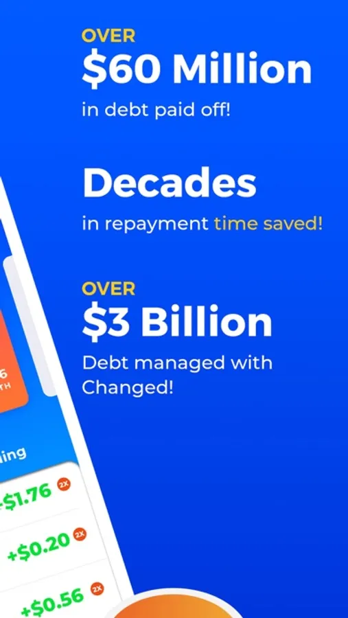 Changed reduces the need to budget for additional payments toward your debt because it aligns with your natural spending and automates the whole process. Just use your credit/debit cards as you usually would and watch your accumulated change become a powerful tool to help pay down debt and be free from debt. Join the Payoff Debt Revolution and save thousands of dollars and gain years of your life back.