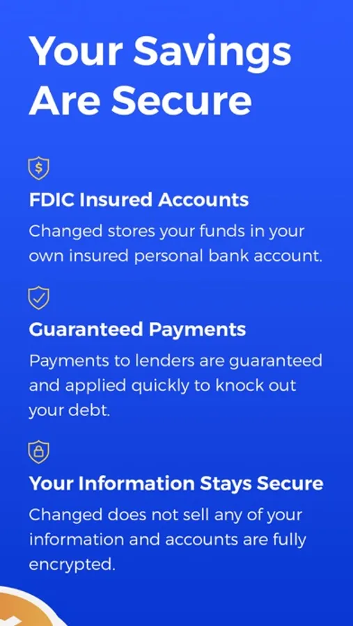 Changed runs in the background to save for you and automatically send payments. Set-it-and-forget-it. Changed makes transfers to your personal FDIC-insured Changed account based on roundups from your everyday purchases. Once your Changed balance reaches your set threshold, we automatically send a payment to your loan servicer or credit card company to be applied as an extra payment! Whether you have a Mortage, Student, Auto, Credit Card, or personal loan, we're here for you. Sit back and take years off of your repayment!