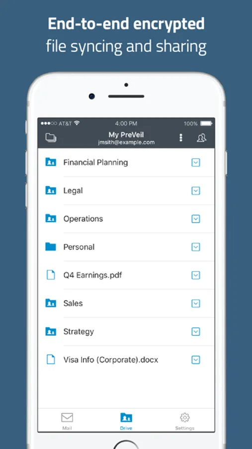 PreVeil Drive encrypts your files and lets you store, share, and access them anywhere.