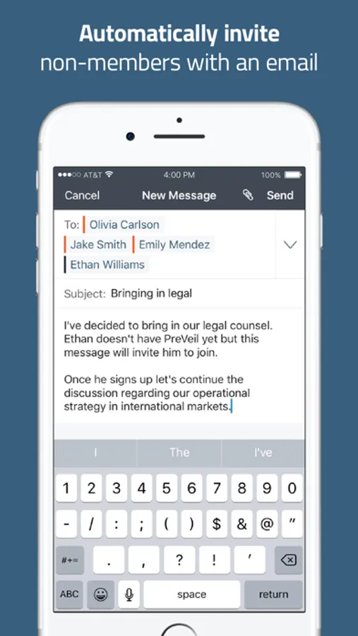 If you send an email or share a folder with anyone who is not a PreVeil member, they’ll automatically be invited to join for free. Alternatively, you can encourage them to sign up for PreVeil by visiting www.preveil.com or downloading from the Apple App Store.