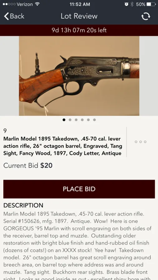 Gunrunner Auctions app is designed with YOU in mind as you search for your dream gun in our monthly firearm lots. Our feature rich app includes superior photo quality with enlargement capability, unlimited photos, quick bidding, the ability to 'watch lots', allows you to sort categories and look at just your favorite type firearms as well as view your all of your current bids. You can easily access completed auctions from other months as well. Got a firearm to consign? There’s a place to upload photos and description to us for evaluation and appraisal. Bid from anywhere now!