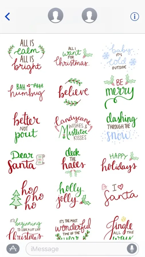 Christmas Script is a cute and whimsical hand crafted set with over 50 stickers perfect for the holidays. Set includes Christmas Trees, Holly, Santa Hats, Stars, Ornaments, Presents, Candy Canes, and Snowflakes plus these holiday phrases: