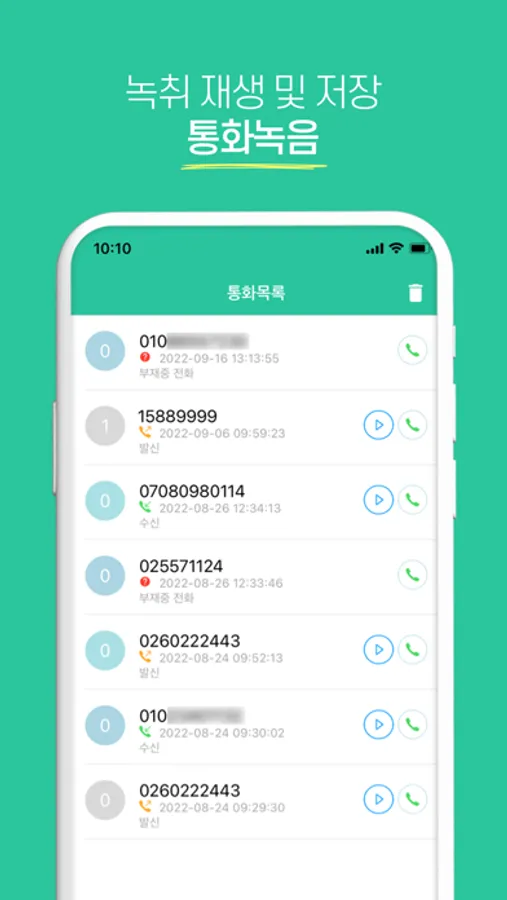 [설정 > 통화설정 > 녹취사용요청]에 체크하면