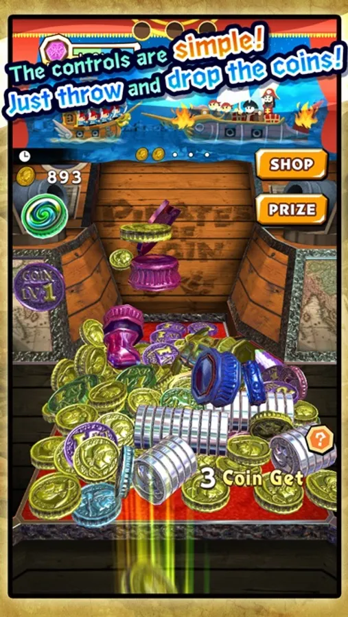 Gain lots of coins and a prize will appear! Aim and shoot at the prize with coins; hit it for a chance to win it.