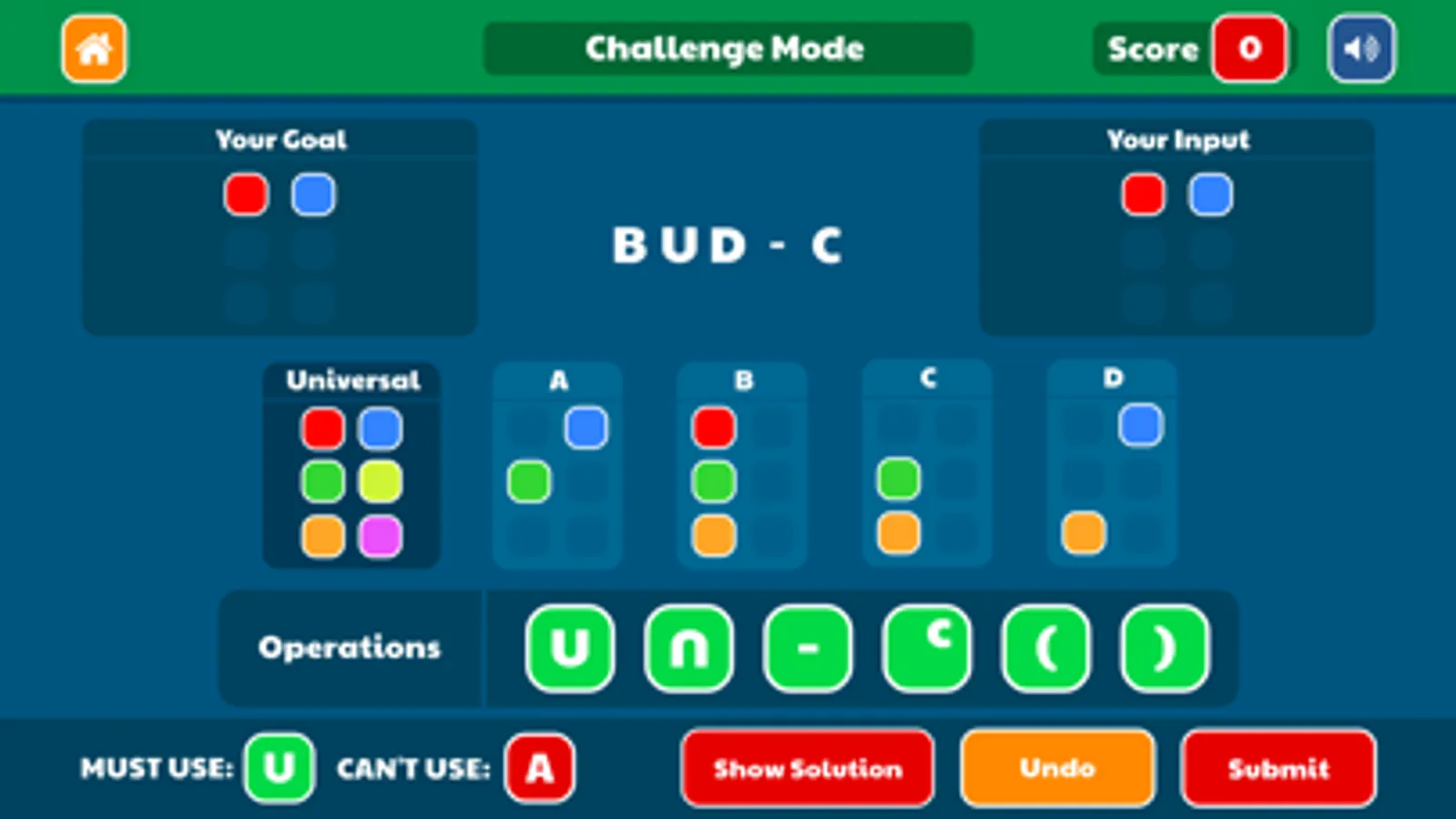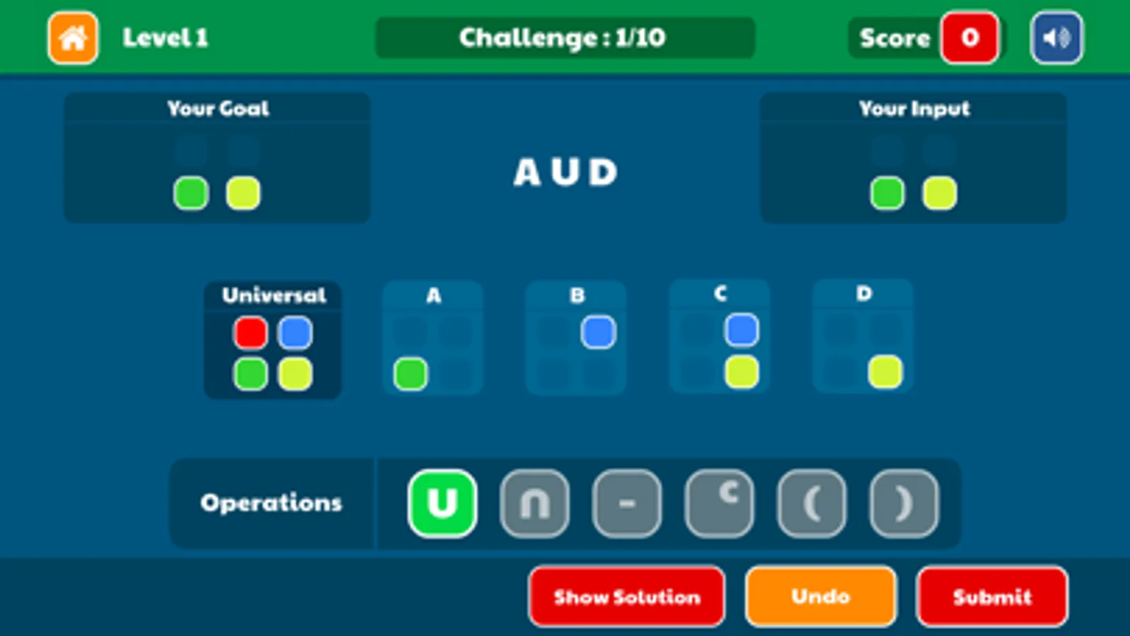 Sets Challenge is a multi-level game that will help you master the basic of sets theory while having fun and challenging yourself and your colleagues.
