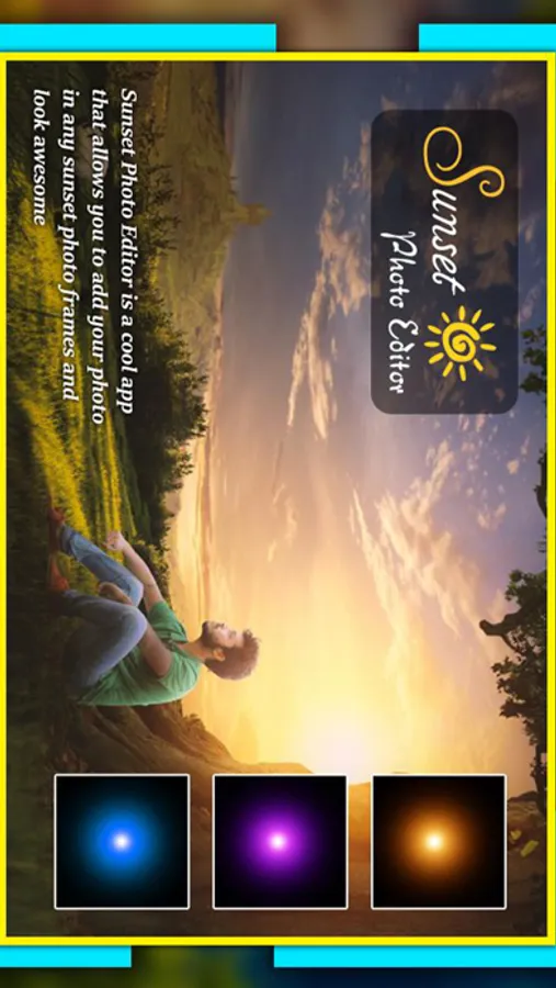sunset photo editor new version 2017 hd You can depict your photos more beautiful, attractive, fantastic, amazing, wonderful, fabulous, tremendous, great, remarkable and decorate with the help of our sun set photo editor and border frames given in the beautiful sun set photo collection. You can take photo from your mobile camera, gallery or from cloud storage and then place it in beautiful photo editor sunset.