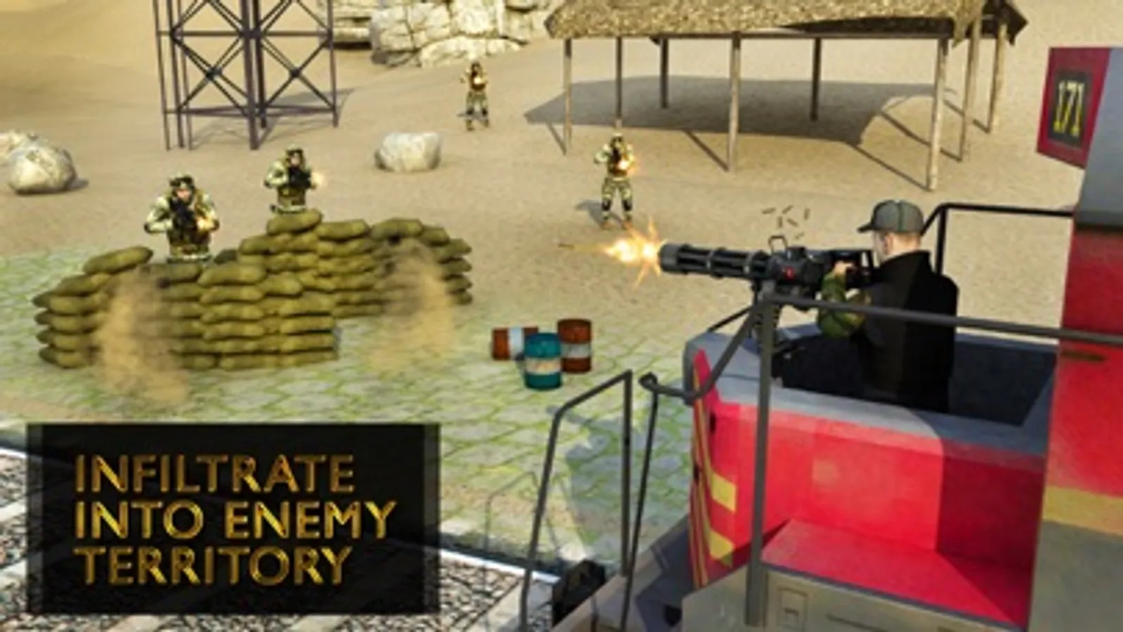 Cargo railcar is passing through a deserted warfield in enemy territory along with secret convoy. Fight terrorist army and secure police train against frontline soldiers in danger zone. Shoot armed rebels in hideouts and kill sniper guards on watch towers near railway lines. Defend national security and sensitive information about military operations from mafia crime syndicate.