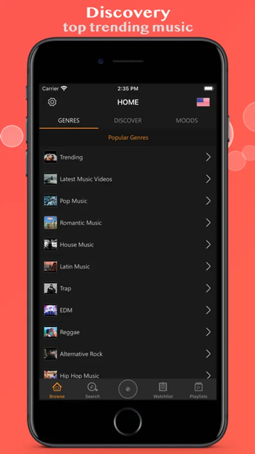 - Add searched music into watchlist or playlist as well as remove them easily.
