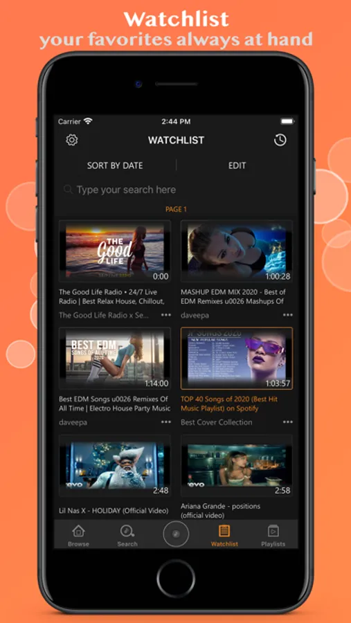 - Sort video according to adding date into watchlist, duration, title.