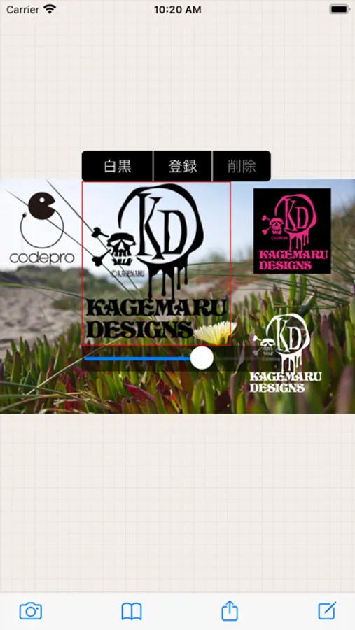 ③「新規ロゴ追加」→「配置」→「登録」、ロゴの位置やサイズを整えて完成!