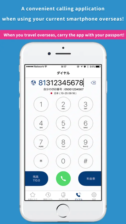 When you are travelling outside of Japan, you need to pay a hefty fee even if you just receive a call with a standard mobile phone number (starting with 090 or 080) of Japanese mobile phone carriers. With the TELINK050 app, calls to your 050 number cost you nothing!